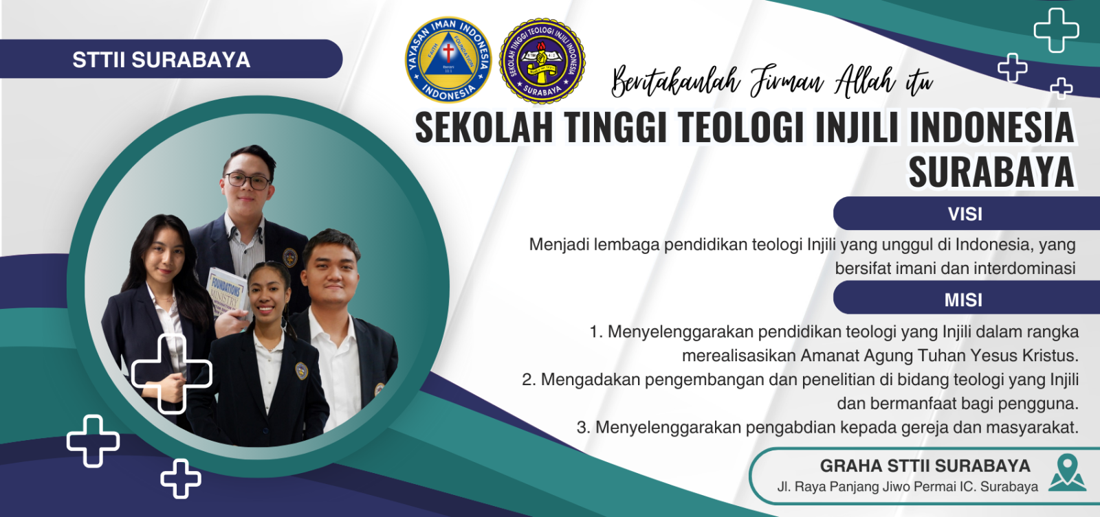 Sekolah Tinggi Teologi Injili Indonesia (STTII) Surabaya membuka kesempatan bagi Anda yang terpanggil untuk mendalami teologi dan pelayanan Kristen. Kami menyediakan program pendidikan teologi berkualitas yang membekali Anda menjadi pemimpin Kristen yang unggul dalam iman, ilmu, dan karakter.